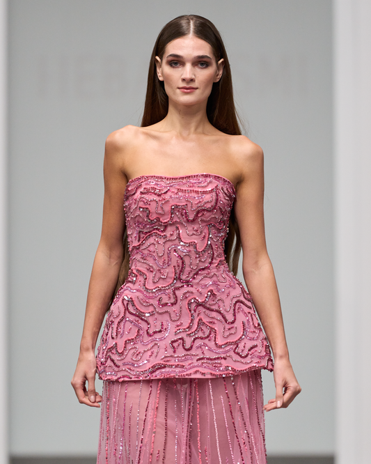 Strapless mermaid dress beaded in shades of pink - I-HJ 127