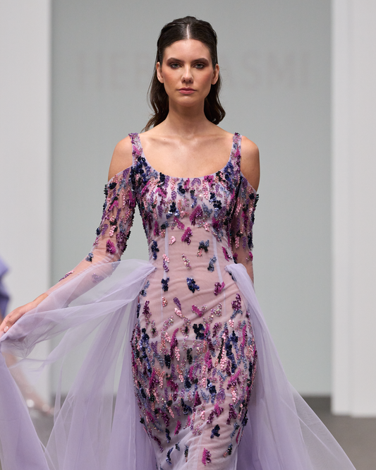 Purple maxi dress with a mix of embroidery and an overskirt - I-HJ 129