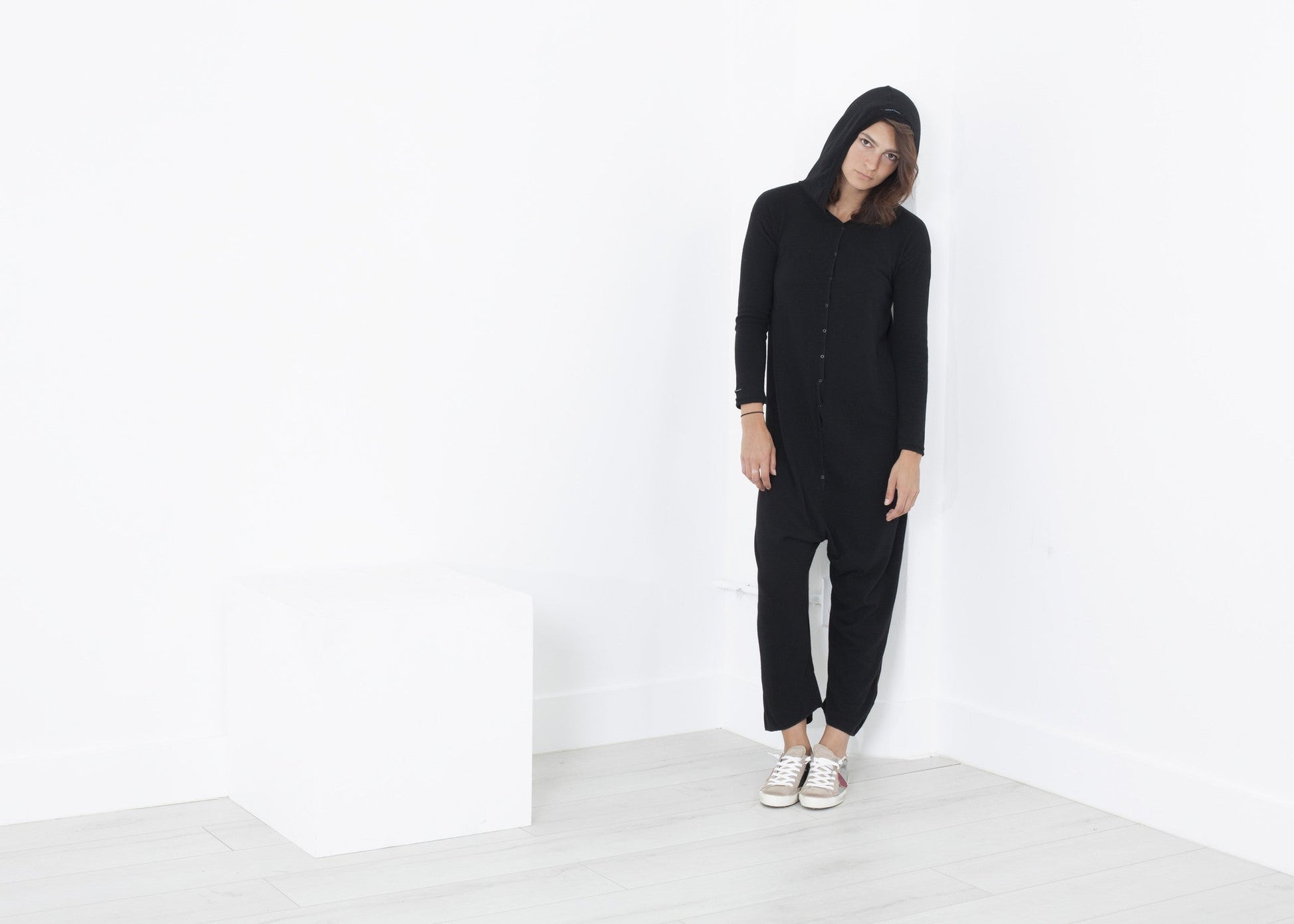 Knit Hooded Jumpsuit in Black